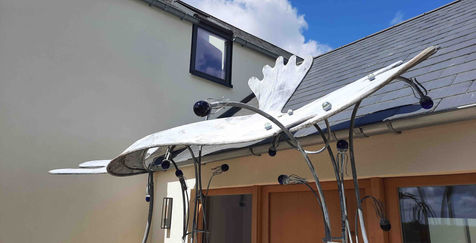 Take a look at the images to see the process from the original drawings, through to the forming of the structure, the final build, galvanising and patination. We had a trial fitting when Lydia was complete - luckily there were some ground workers on site that day as it took six of us to get Lydia into position. The final installation went without a hitch and I'm massively pleased and proud of the end result. Lydia has found her new roost and makes an entrance for all to see!