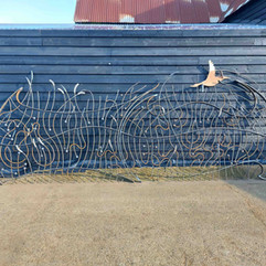 ...here are a few commissioned projects that I've been working on lately: A huge set of gates featuring bulrushes and topped off with a mallard; A pond life gate; Some ironwork for clients that allow me to let my imagination run wild and an impressive entrance for The Milk Shed Scandinavian cafe just outside Ipswich. Don't hesitate to contact me if you've got an idea you'd like to discuss. However, crazy it seems, believe me, it won't be as mad as some of my own designs! And I'm always up for a challenge.